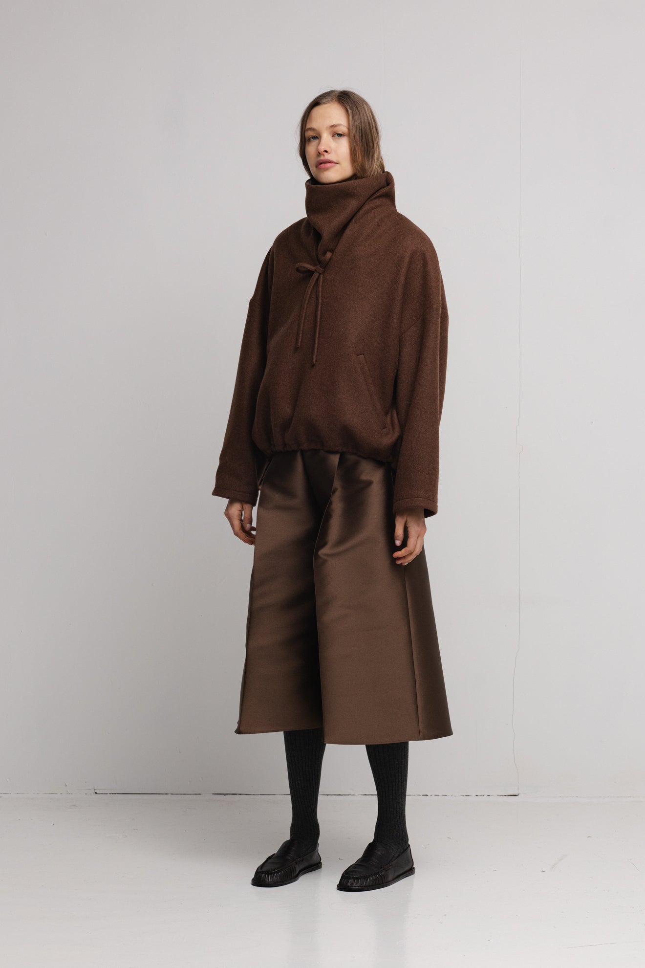 Soft anorak crafted from wool in a cream shade. Lined with fine cotton in a classic check pattern for extra comfort and style. Featuring a practical kangaroo pocket at the front and a sweet bow detail. The elastic hem allows the anorak to be adjusted and styled just the way you like.